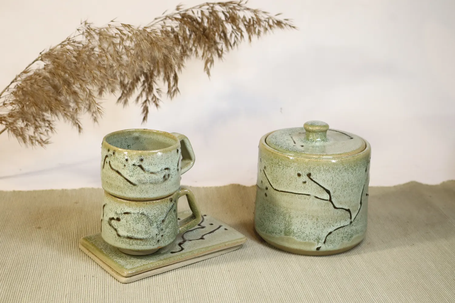 Stoneware set of different products of the Shiten collection.