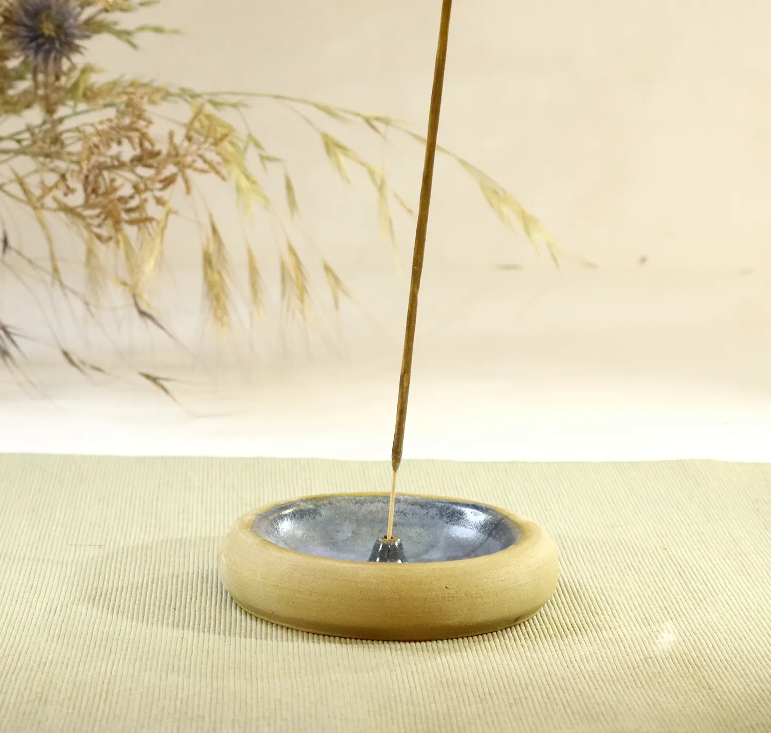Brucia incenso semplice e discreto, realizzato con foggiatura al tornio in grès.